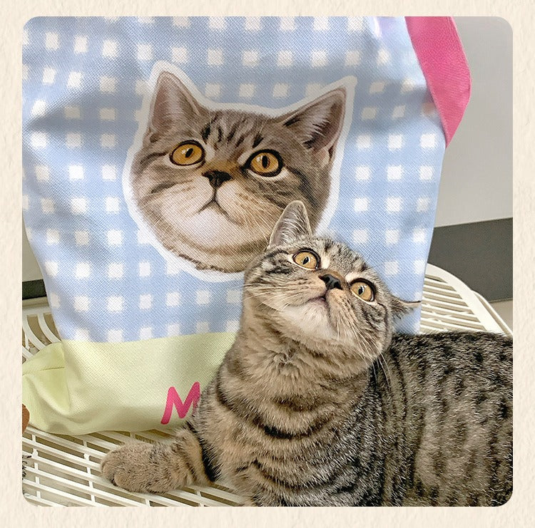 Personalised Pet Canvas Tote – Adorable Cat or Dog Face Print with Name, Customisable Gift Bag for Animal Lovers & Everyday Use