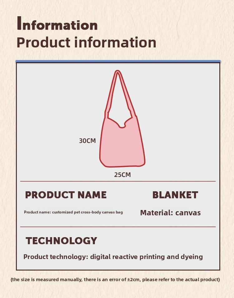 Personalised Pet Crossbody Canvas Bag – Stylish Custom Cat & Dog Print Tote, Creative Gift Idea for Animal Lovers