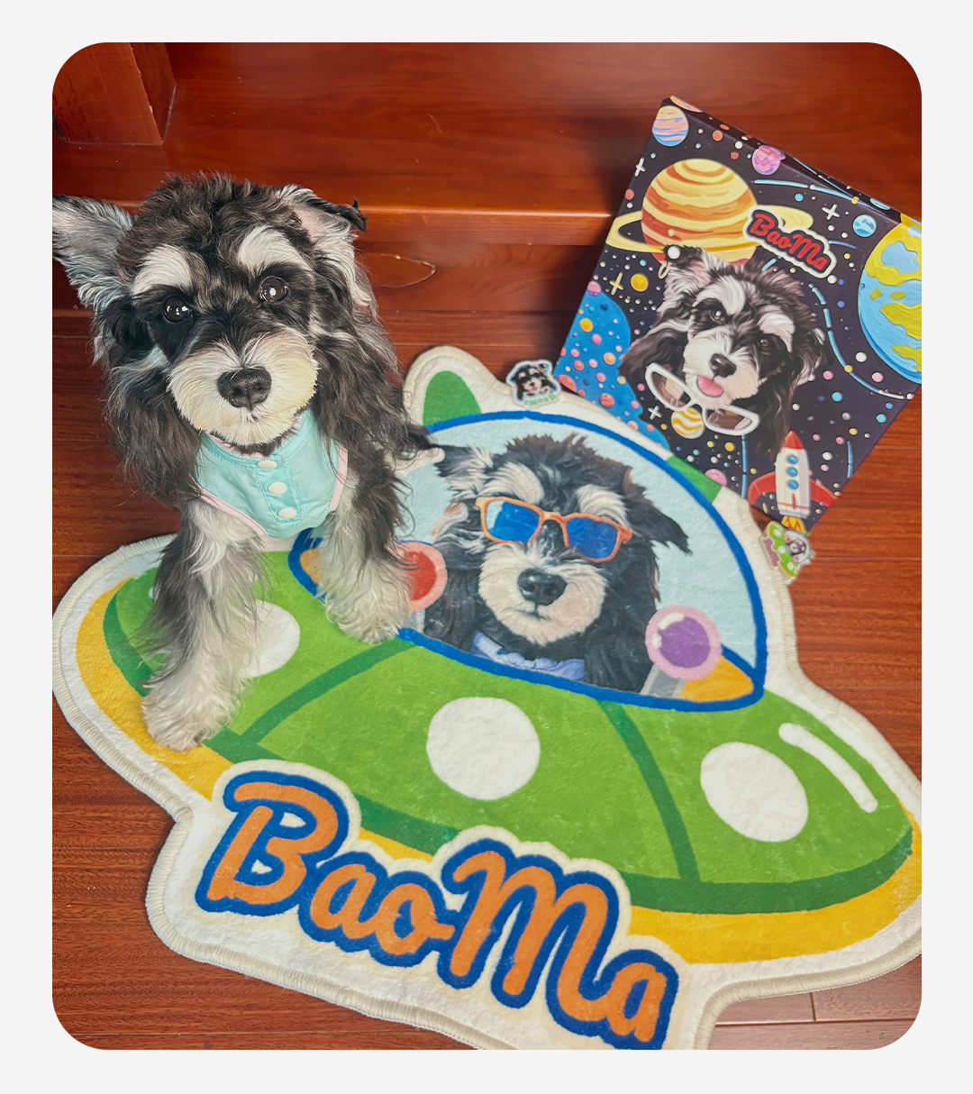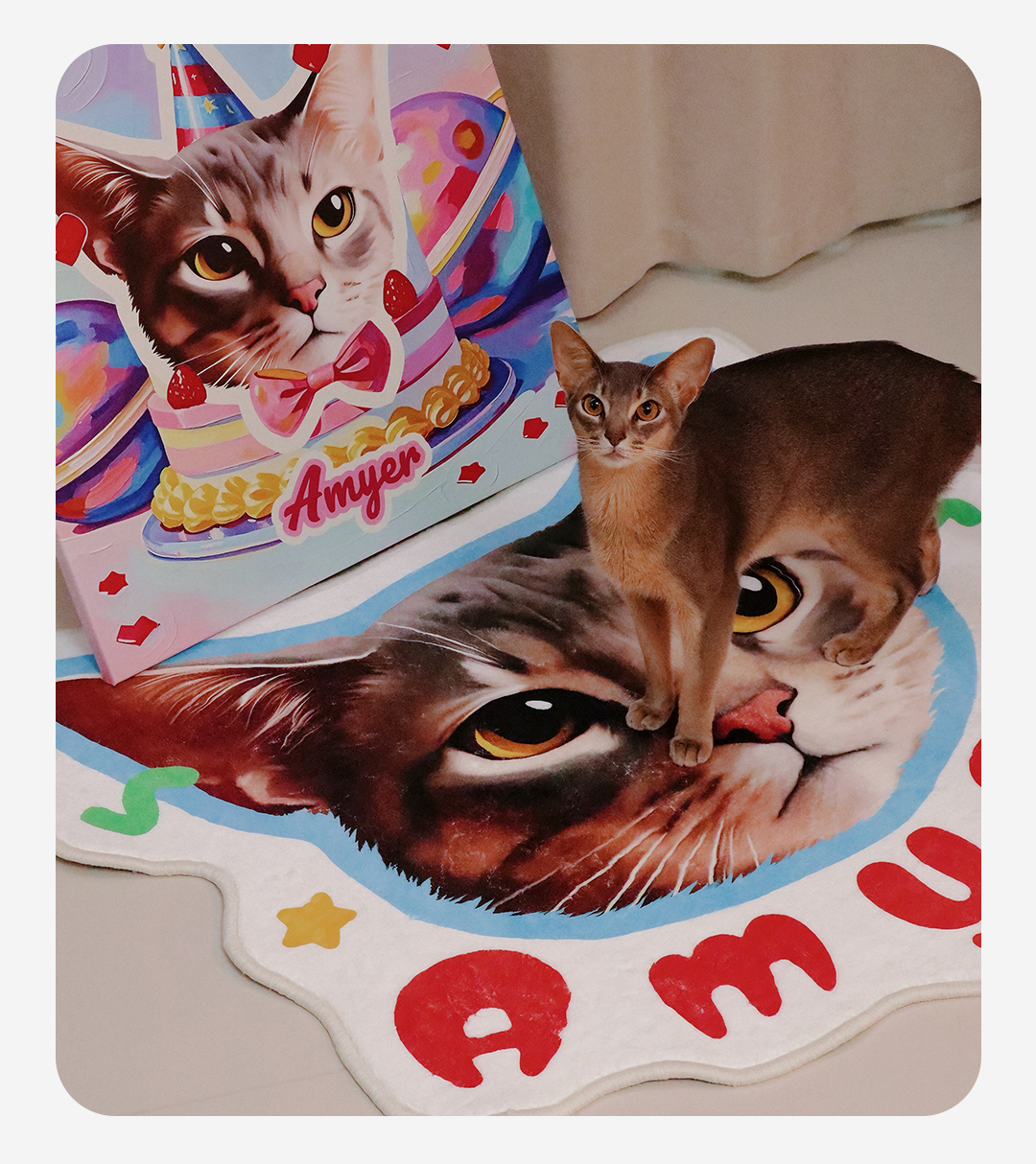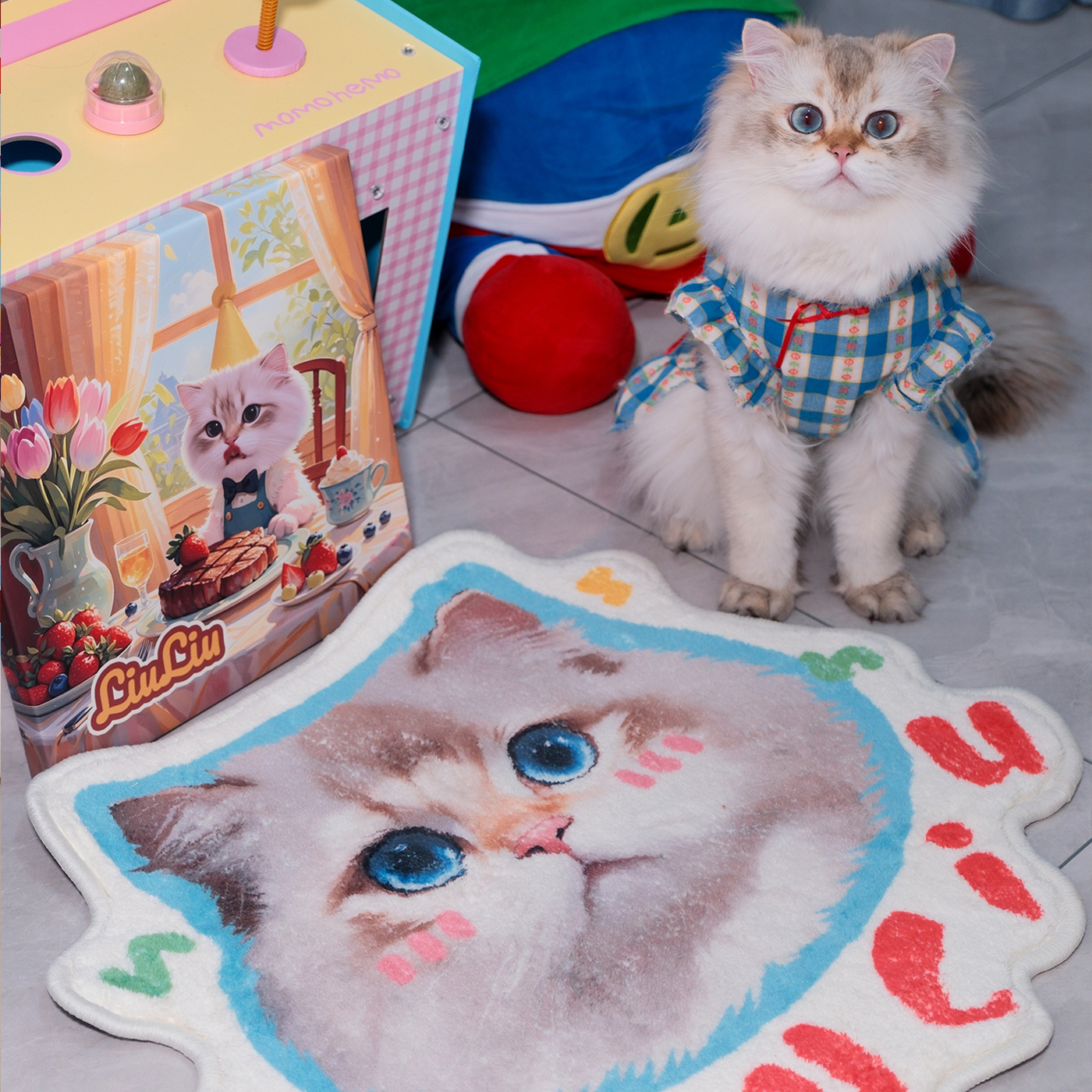 Personalised Pet Portrait Floor Mat – Soft Cartoon-Style Rug with Your Pet’s Face